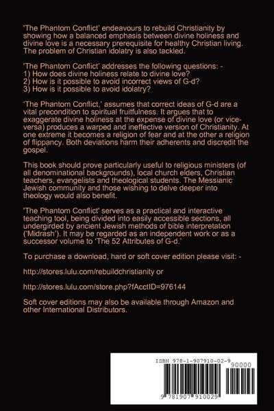 'The Phantom Conflict' endeavours to answer the question, 'how can the Deity be both holy and loving at the same time?' It makes the key assumption that God possess the will and the power to reconcile apparently conflicting divine attributes like holiness and love. 'The Phantom Conflict' also argues that to exaggerate divine love at the expense of divine holiness (or vice-versa) only produces a warped version of Christianity. It breaks new ground by employing an interactive approach, with readers being positively encouraged to practically engage with its content. It also uses of ancient forms of Jewish Bible interpretation (called 'Midrash') to lend greater clarity to the issues as whether divine holiness is compatible with divine love. 'The Phantom Conflict' also has a well organized structure that divides information into 'bite-sized' chunks.