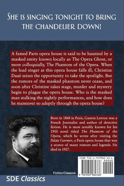 She is singing tonight to bring the chandelier down! A famed Paris opera house is said to be haunted by a masked entity known locally as The Opera Ghost, or more colloquially, The Phantom of the Opera . When the lead singer at this opera house falls ill, Christine Daaé seizes the opportunity to take the spotlight. But the rumors of the masked phantom never cease, and soon after Christine takes stage, murder and mystery begin to plague the opera house. Who is the masked man stalking the nightly performances, and how does he maneuver so adeptly through the opera house?