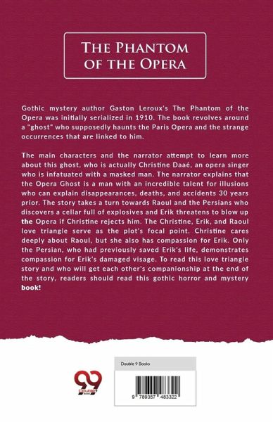 Gothic mystery author Gaston Leroux's The Phantom of the Opera was initially serialized in 1910. The book revolves around a "ghost" who supposedly haunts the Paris Opera and the strange occurrences that are linked to him. The main characters and the narrator attempt to learn more about this ghost, who is actually Christine Daaé, an opera singer who is infatuated with a masked man. The narrator explains that the Opera Ghost is a man with an incredible talent for illusions who can explain disappearances, deaths, and accidents 30 years prior. The story takes a turn towards Raoul and the Persians who discovers a cellar full of explosives and Erik threatens to blow up the Opera if Christine rejects him. The Christine, Erik, and Raoul love triangle serve as the plot's focal point. Christine cares deeply about Raoul, but she also has compassion for Erik. Only the Persian, who had previously saved Erik's life, demonstrates compassion for Erik's damaged visage. To read this love triangle story and who will get each other's companionship at the end of the story, readers should read this gothic horror and mystery book!