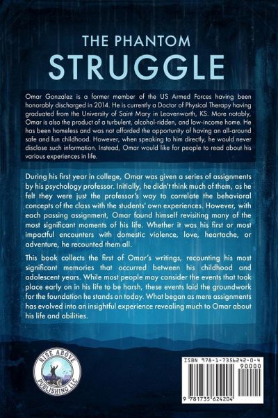Omar Gonzalez is a former member of the US Armed Forces and is currently a Doctor of Physical Therapy. More notably, Omar is also an award-winning author, having released his first book, The Phantom Struggle: Memoirs of a Life Once Struggling, in the late summer of 2020. The product of a turbulent, alcohol-ridden, and low-income home, he has been homeless and was not afforded the opportunity of having an all-around safe and fun childhood. However, when speaking to him directly, he would never disclose such information. Instead, Omar would like for people to read about his various experiences in life. Whether it is encountering abuse, love, heartache, religion, or self-discovery, he has a poem or story for such an experience. When he is not busy with professional endeavors, Omar spends his time thinking of ways to write about his life or others' lives and does not shy away from using fantastic elements to convey his message. Omar yearns to write emotion-driven stories that captivate the readers' spectrum of emotions and imagination so that they feel and see the story unfold before them.