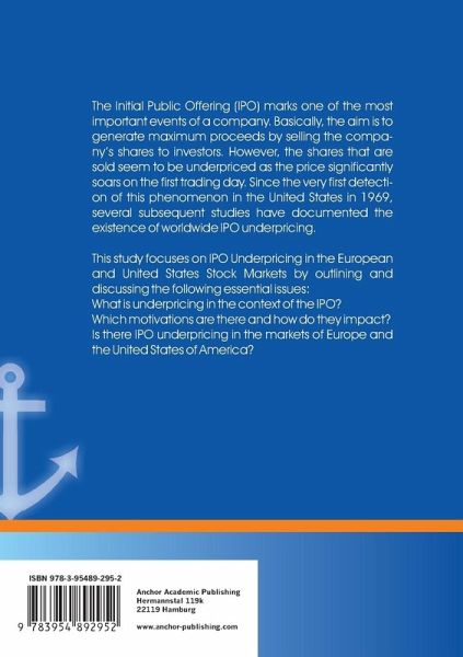 The Initial Public Offering (IPO) marks one of the most important events of a company. Basically, the aim is to generate maximum proceeds by selling the company s shares to investors. However, the shares that are sold seem to be underpriced as the price significantly soars on the first trading day. Since the very first detection of this phenomenon in the United States in 1969, several subsequent studies have documented the existence of worldwide IPO underpricing.