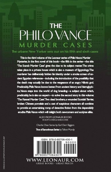 The urbane New Yorker sets out on his fifth and sixth cases This is the third volume of the Leonaur series of Philo Vance Murder Mysteries. In the first novel of this book-the fifth in the series-the title 'The Scarab Murder Case' gives the clue to its subject matter. The crime takes place in a private house which is also a museum of Egyptology. The murderer has deliberately hidden his identity under a smoke screen of ancient Egyptian references-including the introduction of the possibility that the death may actually be due to the vengeance of an angry Nilotic god. Predictably, Philo Vance knows better. From ancient history and hieroglyphics, Vance steps into the world of dog breeding-a subject about which, predictably, he is also an expert-to solve the second story in this volume: 'The Kennel Murder Case'. Two dead brothers, a wounded Scottish Terrier, broken Chinese porcelain and a cast of suspicious characters all combine to provide an entertaining romp of detective fiction from the dependably erudite Philo Vance which will delight both newcomers and acolytes alike.