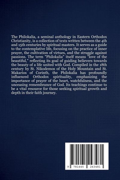 The Philokalia, a seminal anthology in Eastern Orthodox Christianity, is a collection of texts written between the 4th and 15th centuries by spiritual masters. It serves as a guide to the contemplative life, focusing on the practice of inner prayer, the cultivation of virtues, and the struggle against passions. The term "Philokalia" itself means "love of the beautiful," reflecting its goal of guiding believers towards the beauty of a life united with God. Compiled in the 18th century by St. Nikodemos of the Holy Mountain and St. Makarios of Corinth, the Philokalia has profoundly influenced Orthodox spirituality, emphasizing the importance of prayer of the heart, watchfulness, and the unceasing remembrance of God. Its teachings continue to be a vital resource for those seeking spiritual growth and depth in their faith journey.