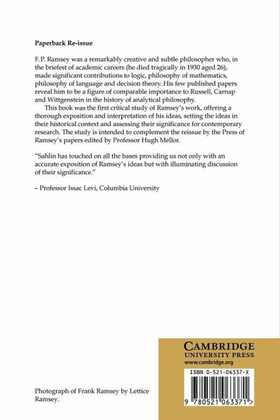 F. P. Ramsey was a remarkably creative and subtle philosopher who made significant contributions to logic, philosophy of mathematics, philosophy of language and decision theory.