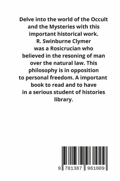 Delve into the world of the Occult and the Mysteries with this important historical work. R. Swinburne Clymer was a Rosicrucian who believed in the resoning of man over the natural law. This philosophy is in opposition to personal freedom. A important book to read and to have in a serious student of histories library.