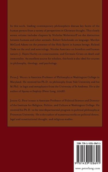 In this work, leading contemporary philosophers discuss key facets of the human person from a variety of perspectives in Christian thought. This closely woven volume includes chapters by Nicholas Wolterstorff on the distinction between humans and other animals; Robert Sokolowski on language; Marilyn McCord Adams on the presence of the Holy Spirit in human beings; Roland Teske on the soul and soteriology; Nicolas Austriaco on bioethics and human nature; J. Hayes Hurley on consciousness; and Germain Grisez on death and immortality. An excellent source for scholars, this book is also ideal for courses in philosophy, theology, and psychology.