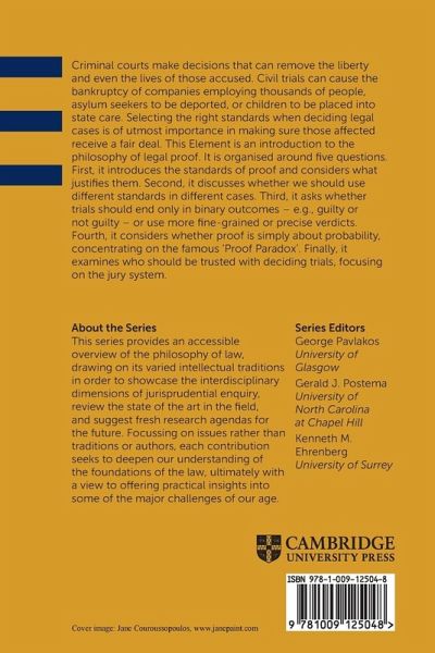 This Element introduces the standards of proof and considers what justifies them, discusses whether we should use different standards in different cases, asks whether trials should end only in binary outcomes or use more precise verdicts, considers whether proof is simply about probability, and examines who should be trusted with deciding trials.