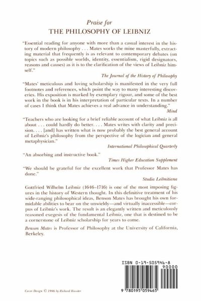 In this definitive treatment of his wide-ranging philosophical ideas, Benson Mates has brought his own formidable abilities to gear on the unwieldy--and virtually inaccessible--corpus of Leibniz's work.