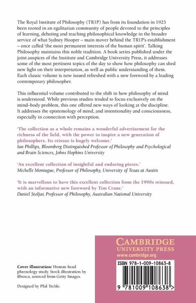 Foreword Tim Crane Introduction Anthony O'Hear 1. The mind-body problem after fifty years Jaegwon Kim 2. How to find the neural correlate of consciousness Ned Block 3. Embodiment and the philosophy of mind Andy Clark 4. Folk psychology and mental simulation Martin Davies and Tony Stone 5. Understanding other minds from the inside Jane Heal 6. Self-knowledge: The wittgensteinian legacy Crispin Wright 7. Joint attention and the first-person John Campbell 8. Consciousness as existence Ted Honderich 9. Setting things before the mind M. G. F. Martin 10. Perceptual intentionality. Attention and consciousness Naomi Eilan 11. Experience and reason in perception Bill Brewer 12. Intentionality as the mark of the mental Tim Crane 13. Intentionality and interpretation Gregory Mcculloch 14. Externalism and norms Cynthia Macdonald 15. Mind, world and value Michael Morris 16. Mind, knowledge and reality: Themes from kant Quassim Cassam 17. The modality of freedom Christopher Peacocke 18. Dualism in action Jennifer Hornsby.