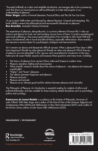 "Succeeds brilliantly as a clear and readable introduction, yet manages also to be a pioneering work that draws on neuroscience as well as philosophy to make real progress in our understanding of pleasure." - Peter Singer, author of Animal Liberation, Practical Ethics and The Life You Can Save
