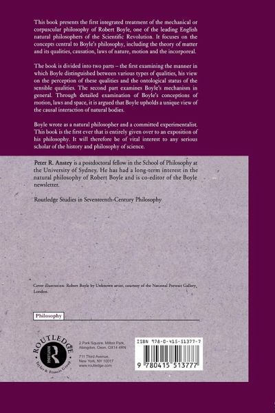 First Published in 2004. This book presents the first integrated treatment of the mechanical or corpuscular philosophy of Robert Boyle, one of the leading English natural philosophers of the Scientific Revolution. It focuses on the concepts central to Boyle?¿?s philosophy, including the theory of matter and its qualities, causation, laws of nature, motion and the incorporeal. The book is divided into two parts?¿"the first examining the manner in which Boyle distinguished between various types of qualities, his view on the perception of these qualities and the ontological status of the sensible qualities. The second part examines Boyle?¿?s mechanism in general. Through detailed examination of Boyle?¿?s conceptions of motion, laws and space, it is argued that Boyle upholds a unique view of the causal interaction of natural bodies.