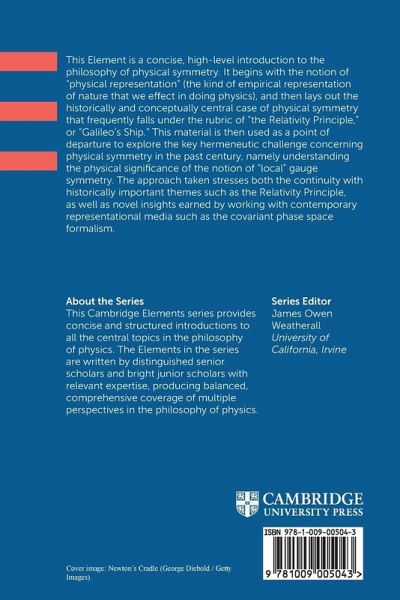 This Element introduces the philosophy of physical symmetry. It stresses both the continuity with historically important themes such as the Relativity Principle, as well as novel insights earned by working with contemporary media such as the covariant phase space and derived critical locus formalisms.