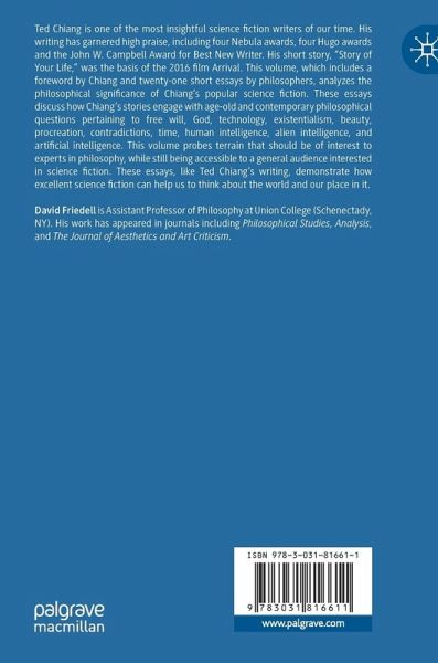 Ted Chiang is one of the most insightful science fiction writers of our time. His writing has garnered high praise, including four Nebula awards, four Hugo awards and the John W. Campbell Award for Best New Writer. His short story, "Story of Your Life," was the basis of the 2016 film Arrival. This volume, which includes a foreword by Chiang and twenty-one short essays by philosophers, analyzes the philosophical significance of Chiang's popular science fiction. These essays discuss how Chiang's stories engage with age-old and contemporary philosophical questions pertaining to free will, God, technology, existentialism, beauty, procreation, contradictions, time, human intelligence, alien intelligence, and artificial intelligence. This volume probes terrain that should be of interest to experts in philosophy, while still being accessible to a general audience interested in science fiction. These essays, like Ted Chiang's writing, demonstrate how excellent science fiction can help us to think about the world and our place in it.