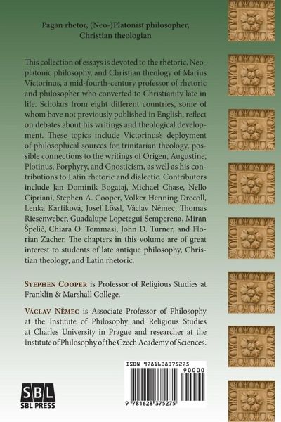 This collection of essays is devoted to the rhetoric, Neoplatonic philosophy, and Christian theology of Marius Victorinus, a mid-fourth-century professor of rhetoric and philosopher who converted to Christianity late in life. Contributors, including Jan Dominik Bogataj, Michael Chase, Nello Cipriani, Stephen A. Cooper, Volker Henning Drecoll, Lenka Karfíková, Josef Lössl, Václav N¿mec, Thomas Riesenweber, Guadalupe Lopetegui Semperena, Miran ¿peli¿, Chiara O. Tommasi, John D. Turner, and Florian Zacher, explore the many facets of Victorinus's writings and thought, from his use of philosophical sources, to his treatises and hymns on the Trinity, and his commentary on Cicero's Rhetoric.