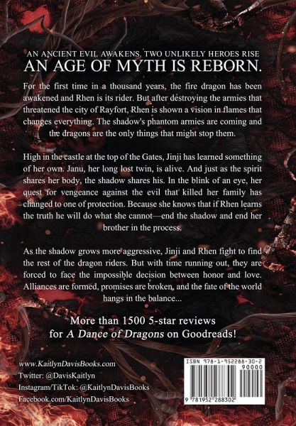 From bestselling author Kaitlyn Davis comes the final book in the thrilling A Dance of Dragons series-perfect for fans of Kristin Cashore and Tamora Pierce! For the first time in a thousand years, the fire dragon has been awakened and Rhen is its rider. But after destroying the armies that threatened the city of Rayfort, Rhen is shown a vision in flames that changes everything. The shadow's phantom armies are coming and the dragons are the only things that might stop them. High in the castle at the top of the Gates, Jinji has learned something of her own. Janu, her long lost twin, is alive. And just as the spirit shares her body, the shadow shares his. In the blink of an eye, her quest for vengeance against the evil that killed her family has changed to one of protection. Because she knows that if Rhen learns the truth he will do what she cannot-end the shadow and end her brother in the process. As the shadow grows more aggressive, Jinji and Rhen fight to find the rest of the dragon riders. But with time running out, they are forced to face the impossible decision between honor and love. Alliances are formed, promises are broken, and the fate of the world hangs in the balance... Start the series for FREE today with the A Dance of Dragons: Series Starter Bundle!