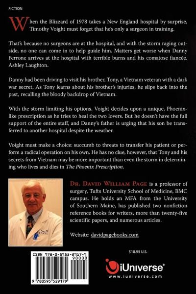 Isolated in a New England hospital by the Blizzard of 1978, training surgeon Timothy Voight becomes solely responsible for two injured lovers. Danny Ferrone drives to Eastport north of Boston with his fiancée, Ashley Laughton, to counsel his brother, Tony, a Vietnam Vet about Tony's dark war secret. His Porsche crashes. Danny is terribly burned. Ashley is comatose with a serious head-injured. The brother's father, Anthony Ferrone, the most powerful lawyer in Massachusetts, insists Danny be transferred to Boston. Tony sees similarities between his brother's injuries and those he saw in the jungle. The blizzard hammers New England, isolating Voight with no surgeons to guide him. Only his nemesis, neurosurgeon Bruce Chalmers, remains in-house. Voight hatches a unique treatment scheme involving the two lovers, a Phoenix-like prescription. But, Chalmers disagrees on what's best for Danny and Ashley. Danny plunges into shock. Voight must make a choice between succumbing to threats from Anthony and Bruce Chalmers to transfer Danny in the storm or perform a radical operation by himself to save Danny's life. Voight decides. Then, Tony enters the picture. He reveals his secret to Danny in his brother's isolation room. The brothers make an impossible decision.