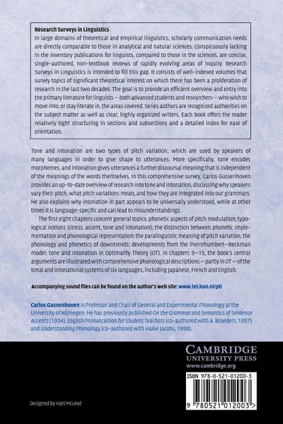 Tone and Intonation are two types of pitch variation, which are used by speakers of all languages in order to give shape to utterances. More specifically, tone encodes segments and morphemes, and intonation gives utterances a further discoursal meaning that is independent of the meanings of the words themselves. In this comprehensive survey, Carlos Gussenhoven provides an overview of research into tone and intonation, discussing why speakers vary their pitch, what pitch variations mean, and how they are integrated into our grammars. He also explains why intonation in part appears to be universally understood, while at other times it is language-specific and can lead to misunderstandings. After eight chapters on general topics relating to pitch modulation, the book's central arguments are illustrated with comprehensive phonological descriptions - partly in Optimality Theory - of the tonal and intonational systems of six languages, including Japanese, Dutch, and English.