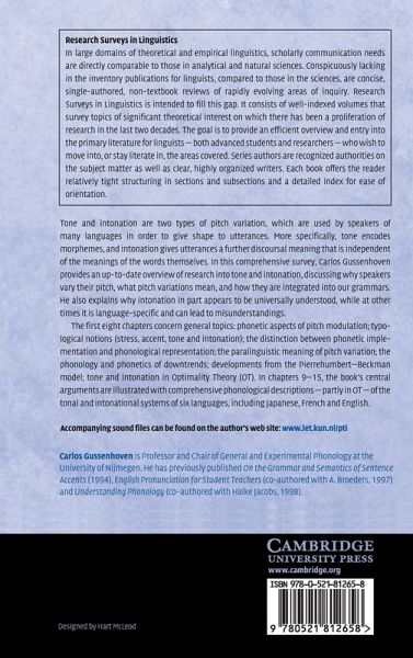 Tone and Intonation are two types of pitch variation, which are used by speakers of all languages in order to give shape to utterances. More specifically, tone encodes segments and morphemes, and intonation gives utterances a further discoursal meaning that is independent of the meanings of the words themselves. In this comprehensive survey, Carlos Gussenhoven provides an overview of research into tone and intonation, discussing why speakers vary their pitch, what pitch variations mean, and how they are integrated into our grammars. He also explains why intonation in part appears to be universally understood, while at other times it is language-specific and can lead to misunderstandings. After eight chapters on general topics relating to pitch modulation, the book's central arguments are illustrated with comprehensive phonological descriptions - partly in Optimality Theory - of the tonal and intonational systems of six languages, including Japanese, Dutch, and English.