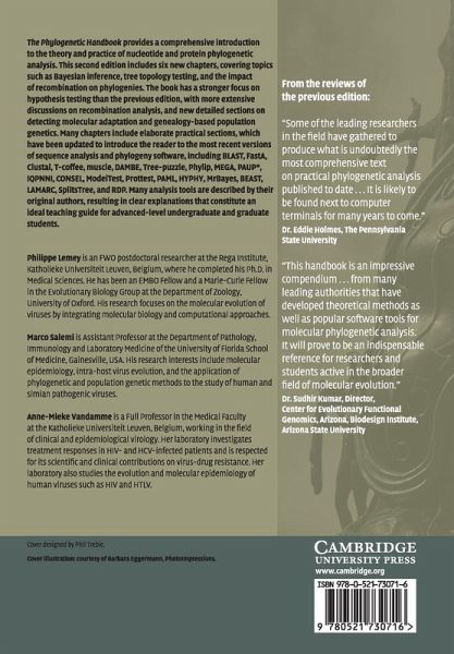 The Phylogenetic Handbook is a broad, hands on guide to theory and practice of nucleotide and protein phylogenetic analysis. This second edition includes six new chapters, covering topics such as Bayesian inference, tree topology testing and the impact of recombination on phylogenies, as well as a detailed section on molecular adaptation. The book has a stronger focus on hypothesis testing than the previous edition, with more extensive discussions on recombination analysis, detecting molecular adaptation and genealogy-based population genetics. Many chapters include elaborate practical sections, which have been updated to introduce the reader to the most recent versions of sequence analysis and phylogeny software, including BLAST, FastA, Clustal, T-coffee, Muscle, DAMBE, Tree-puzzle, Phylip, MEGA, PAUP*, IQPNNI, CONSEL, ModelTest, Prottest, PAML, HYPHY, MrBayes, BEAST, LAMARC, SplitsTree, and RDP. Many analysis tools are described by their original authors, resulting in clear explanations that constitute an ideal teaching guide for advanced-level undergraduate and graduate students.