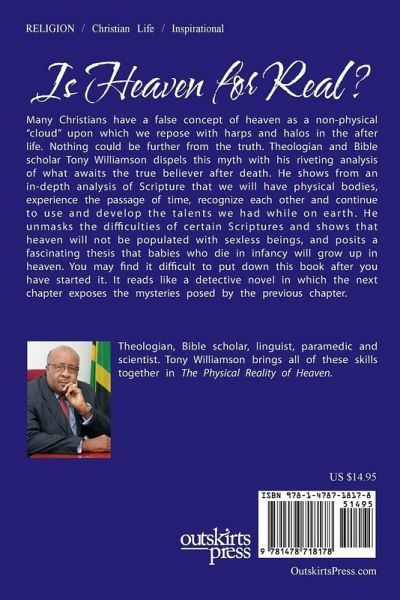 Is Heaven for Real? Many Christians have a false concept of heaven as a non-physical "cloud" upon which we repose with harps and halos in the after life. Nothing could be further from the truth. Theologian and Bible scholar Tony Williamson dispels this myth with his riveting analysis of what awaits the true believer after death. He shows from an in-depth analysis of Scripture that we will have physical bodies, experience the passage of time, recognize each other and continue to use and develop the talents we had while on earth. He unmasks the difficulties of certain Scriptures and shows that heaven will not be populated with sexless beings, and posits a fascinating thesis that babies who die in infancy will grow up in heaven. You may find it difficult to put down this book after you have started it. It reads like a detective novel in which the next chapter exposes the mysteries posed by the previous chapter.