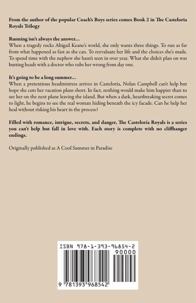 From the author of the popular Coach's Boys series comes Book 2 in The Casteloria Royals Trilogy Running isn't always the answer… When a tragedy rocks Abigail Keane's world, she only wants three things. To run as far from what happened as fast as she can. To reevaluate her life and the choices she's made. To spend time with the nephew she hasn't seen in over year. What she didn't plan on was butting heads with a doctor who rubs her wrong from day one. It's going to be a long summer… When a pretentious headmistress arrives in Casteloria, Nolan Campbell can't help but hope she cuts her vacation plans short. In fact, nothing would make him happier than to see her on the next plane leaving the island. But when a dark, heartbreaking secret comes to light, he begins to see the real woman hiding beneath the icy facade. Can he help her heal without risking his heart in the process? Filled with romance, intrigue, secrets, and danger, The Casteloria Royals is a series you can't help but fall in love with. Each story is complete with no cliffhanger endings. Originally published as A Cool Summer in Paradise