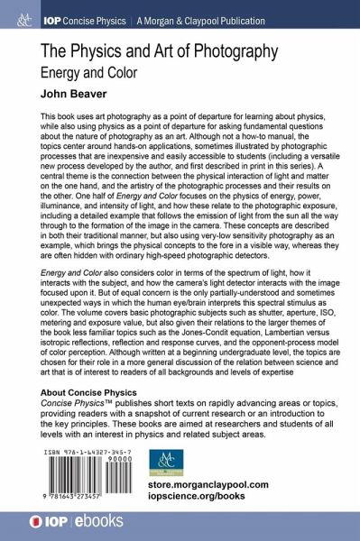 This book uses art photography as a point of departure for learning about physics, while also using physics as a point of departure for asking fundamental questions about the nature of photography as an art. Although not a how-to manual, the topics center around hands-on applications, sometimes illustrated by photographic processes that are inexpensive and easily accessible to students (including a versatile new process developed by the author, and first described in print in this series). A central theme is the connection between the physical interaction of light and matter on the one hand, and the artistry of the photographic processes and their results on the other. One half of Energy and Color focuses on the physics of energy, power, illuminance, and intensity of light, and how these relate to the photographic exposure, including a detailed example that follows the emission of light from the sun all the way through to the formation of the image in the camera. These concepts are described in both their traditional manner, but also using very-low sensitivity photography as an example, which brings the physical concepts to the fore in a visible way, whereas they are often hidden with ordinary high-speed photographic detectors. Energy and Color also considers color in terms of the spectrum of light, how it interacts with the subject, and how the camera's light detector interacts with the image focused upon it. But of equal concern is the only partially-understood and sometimes unexpected ways in which the human eye/brain interprets this spectral stimulus as color. The volume covers basic photographic subjects such as shutter, aperture, ISO, metering and exposure value, but also given their relations to the larger themes of the book less familiar topics such as the Jones-Condit equation, Lambertian versus isotropic reflections, reflection and response curves, and the opponent-process model of color perception. Although written at a beginning undergraduate level, the topics are chosen for their role in a more general discussion of the relation between science and art that is of interest to readers of all backgrounds and levels of expertise.