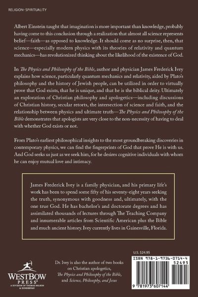 Albert Einstein taught that imagination is more important than knowledge, probably having come to this conclusion through a realization that almost all science represents belief-faith-as opposed to knowledge. It should come as no surprise, then, that science-especially modern physics with its theories of relativity and quantum mechanics-has revolutionized thinking about the likelihood of the existence of God. In The Physics and Philosophy of the Bible, author and physician James Frederick Ivey explains how science, particularly quantum mechanics and relativity, aided by Plato's philosophy and the history of Jewish people, can be utilized in order to virtually prove that God exists, that he is unique, and that he is the biblical deity. Ultimately an exploration of Christian philosophy and apologetics-including discussions of Christian history, secular retorts, the intersection of science and faith, and the relationship between physics and ultimate truth-The Physics and Philosophy of the Bible demonstrates that apologists are very close to the non-necessity of having to deal with whether God exists or not. From Plato's earliest philosophical insights to the most groundbreaking discoveries in contemporary physics, we can find the fingerprints of God that prove He is with us. And. God seeks us just as we seek him, for he desires cognitive individuals with whom he can enjoy mutual love and intimacy.