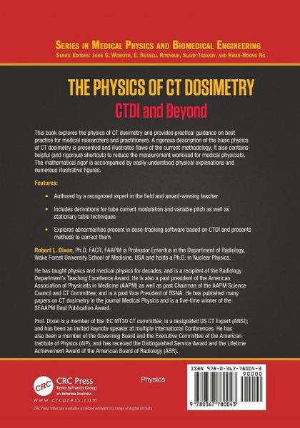 This book explores the physics of CT dosimetry and provides practical guidance on best practice for medical researchers and practitioners. A rigorous description of the basic physics of CT dosimetry is presented and illustrates flaws of the current methodology. It also contains helpful (and rigorous) shortcuts to reduce the measurement workload for medical physicists. The mathematical rigor is accompanied by easily-understood physical explanations and numerous illustrative figures. Features: Authored by a recognised expert in the field and award-winning teacher Includes derivations for tube current modulation and variable pitch as well as stationary table techniques Explores abnormalities present in dose-tracking software based on CTDI and presents methods to correct them