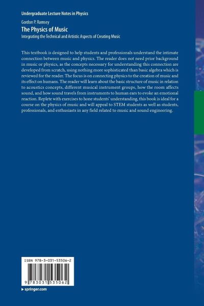 This textbook is designed to help students and professionals understand the intimate connection between music and physics. The reader does not need prior background in music or physics, as the concepts necessary for understanding this connection are developed from scratch, using nothing more sophisticated than basic algebra which is reviewed for the reader. The focus is on connecting physics to the creation of music and its effect on humans. The reader will learn about the basic structure of music in relation to acoustics concepts, different musical instrument groups, how the room affects sound, and how sound travels from instruments to human ears to evoke an emotional reaction. Replete with exercises to hone students' understanding, this book is ideal for a course on the physics of music and will appeal to STEM students as well as students, professionals, and enthusiasts in any field related to music and sound engineering.
