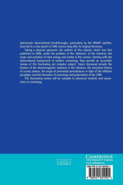 Spectacular observational breakthroughs, particularly by the WMAP satellite, have led to a new epoch of CMB science long after its original discovery. Taking a physical approach, the authors of this volume probe the problem of the 'darkness' of the Universe: the origin and evolution of dark energy and matter in the cosmos. Starting with the observational background of modern cosmology, they provide an accessible review of this fascinating yet complex subject. Topics discussed include the kinetics of the electromagnetic radiation in the Universe, the ionization history of cosmic plamas, the origin of primordial perturbations in light of the inflation paradigm, and the formation of anisotropy and polarization of the CMB. This fascinating review will be valuable to advanced students and researchers in cosmology.