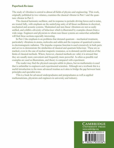 The study of vibration in physical systems is central to almost all fields in physics and engineering. This work, originally published in two volumes, examines the classical aspects in Part I and the quantum oscillator in Part II. The classical linear vibrator is treated first and the underlying unity of all linear oscillations in electrical, mechanical and acoustic systems is emphasized. The treatment of nonlinear vibrations, a field with which engineers and physicists are generally less familiar, is then examined. Part II then concentrates on quantum systems, looking at the vibrations in atoms and molecules and their interaction with electromagnetic radiation. The similarities of classical and quantum methods are stressed and the limits of the classical treatment are examined. Throughout the book, each phenomenon discussed is well illustrated with many examples; and theory and experiment are compared. This is a useful introduction to the more advanced mathematical treatment of vibrations as it bridges the gap between the basic principles and more specialized concepts.