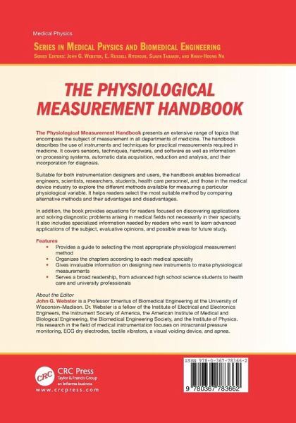 The Physiological Measurement Handbook presents an extensive range of topics that encompass the subject of measurement in all departments of medicine. The handbook describes the use of instruments and techniques for practical measurements required in medicine. It covers sensors, techniques, hardware, and software as well as information on processing systems, automatic data acquisition, reduction and analysis, and their incorporation for diagnosis. Suitable for both instrumentation designers and users, the handbook enables biomedical engineers, scientists, researchers, students, health care personnel, and those in the medical device industry to explore the different methods available for measuring a particular physiological variable. It helps readers select the most suitable method by comparing alternative methods and their advantages and disadvantages. In addition, the book provides equations for readers focused on discovering applications and solving diagnostic problems arising in medical fields not necessarily in their specialty. It also includes specialized information needed by readers who want to learn advanced applications of the subject, evaluative opinions, and possible areas for future study.