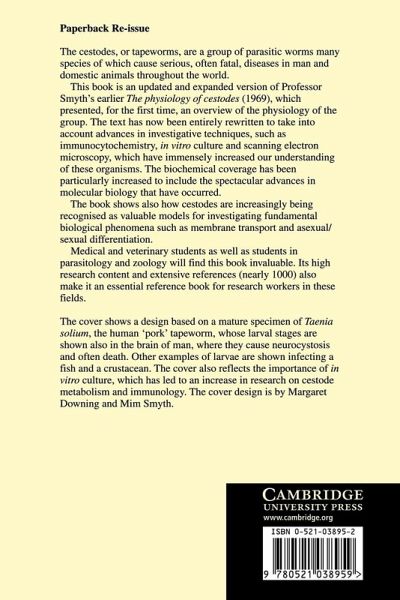 The cestodes, or tapeworms, are a group of parasitic worms many species of which cause serious, often fatal, diseases in man and domestic animals throughout the world. This book is an updated and expanded version of Professor Smyth'sThe Physiology of Cestodes (1969). The text has now been entirely rewritten, taking into account advances in investigative techniques such as immunocytochemistry, in vitro culture and scanning electron microscopy, which have immensely increased our understanding of these organisms. The biochemical coverage now includes the spectacular advances in molecular biology that have occured in recent years. The book also shows how cestodes are increasingly being recognised as valuable models for investigating fundamental biological phenomena such as membrane transport and asexual/sexual differentiation. Students of medicine, veterinary medicine, parasitology and zoology will find this book invaluable. Its high research content and extensive references also make it an essential reference book for researchers in these fields.
