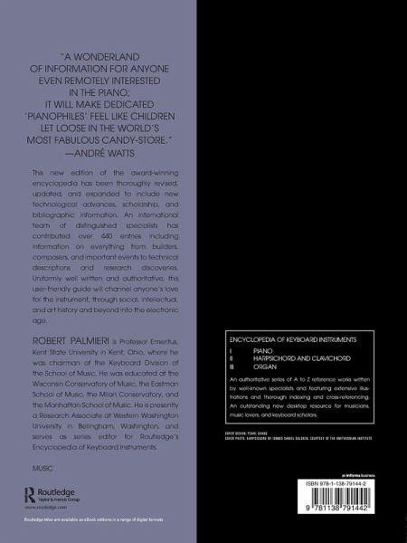 The Encyclopedia of the Piano was selected in its first edition as a Choice Outstanding Book and remains a fascinating and unparalleled reference work. The instrument has been at the center of music history with even composers of large symphonic work asserting that they do not write anything without sketching it out first on a piano; its limitations and expressive capacity have done much to shape the contours of the western musical idiom. Within the scope of this user-friendly guide is everything from the acoustics and construction of the piano to the history of the companies that have built them. The piano-lover might also be surprised to find an entry for Thomas Jefferson, and will no doubt read intently the passages about the changing history of the piano's place in the home. Uniformly well-written and authoritative, this guide will channel anyone's love for the instrument, through social, intellectual, art history and beyond into the electronic age.