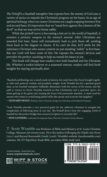 The Pickoff is a baseball metaphor that exposes how the enemy of God uses a variety of tactics to impede the Christian's progress on the bases. In an age of spiritual lethargy when too many Christians are caught napping between first and second base, it's imperative that we ""stand firm against the schemes of the devil"" so that we may arrive home safely. While the pickoff move is becoming a lost art in the world of baseball, it remains a primary weapon in the enemy's arsenal. After Christians are awarded first base, Satan will immediately look to pick them off, sending them back to the dugout in shame. If he can't do that, he'll settle for the stationary Christian who seems content on just standing ""safely"" as first base. But our Lord will have none of this. He exposes the enemy's devices and provides the perfect coaching to help us round the bases in joy. This book will change how readers view both baseball and the Christian life. Whether a rookie believer or a seasoned veteran, readers will find fresh insights for staying spiritually alert.