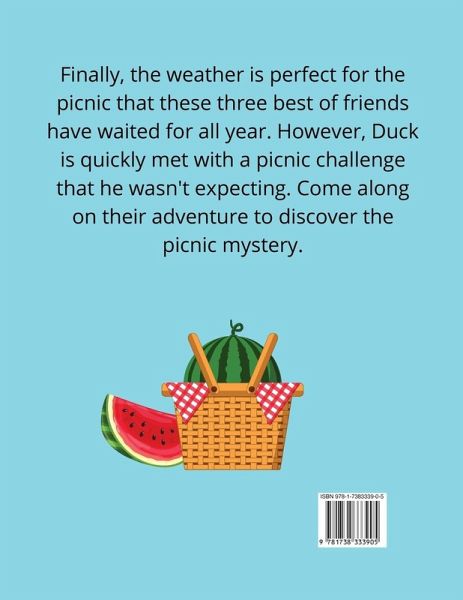 ¿¿¿¿ The Picnic Mystery ¿¿¿¿ Embark on a delightful journey with three best friends - Bear, Rabbit, and Duck - as they eagerly anticipate the perfect picnic day they've been dreaming of all year! In this enchanting 32-page softcover children's book designed for little learners aged 3-6, join the trio in their adventure filled with friendship, surprises, and a charming twist. ¿¿¿¿ Key Features: ¿¿¿¿ Elementary learning: Engage young minds with a delightful tale that sparks curiosity and promotes early learning concepts. ¿¿¿¿ Perfect for Ages 3-6: Tailored for the inquisitive minds of preschoolers and early school-age children. ¿¿¿¿ Vibrant Illustrations: Immerse young readers in the enchanting world of "The Picnic Mystery" with vibrant illustrations that vividly depict the charming characters and their delightful adventure. ¿¿¿¿ 32 Pages of Fun: A perfect length for bedtime stories, classroom reading, or bonding moments with little ones. ¿¿¿¿ Professional Quality: The book boasts a high-gloss cover and professional binding for durability and a polished finish. ¿¿¿¿ Duck's Picnic Challenge: As the friends set out for their long-awaited picnic, Duck encounters an unexpected challenge that adds an exciting twist to their day. What could it be? Join them in unraveling the mystery, and witness the joy of friendship as they work together to overcome obstacles and make their picnic dreams come true. ¿¿¿¿ Educational and Entertaining: "The Picnic Mystery" not only entertains but also introduces young readers to valuable lessons in problem-solving, teamwork, and the joy of shared adventures. This heartwarming story is sure to become a cherished addition to your child's library. Don't miss out on this engaging and beautifully crafted children's book. Order your copy today and dive into the whimsical world of "The Picnic Mystery" with your little ones! ¿¿¿¿¿