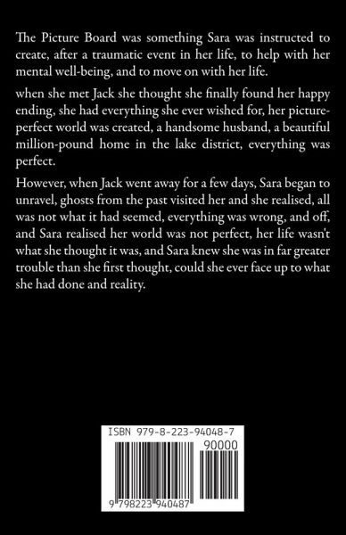 Sara was instructed to create a Picture Board, after experiencing a traumatic event, to aid her mental well-being and serve as a permanent fixture in her life. When she met Jack, she thought that she had finally found her happily ever after. Her picture-perfect world was complete, or so she thought. However, when Jack went away for a few days, Sara began to unravel. Ghosts from her past haunted her, and she realized that everything was not as it seemed. Her world was off, and Sara realized that her life wasn't what she thought it was. She knew she was in far greater trouble than she had originally thought. The question was, would she face up to it?