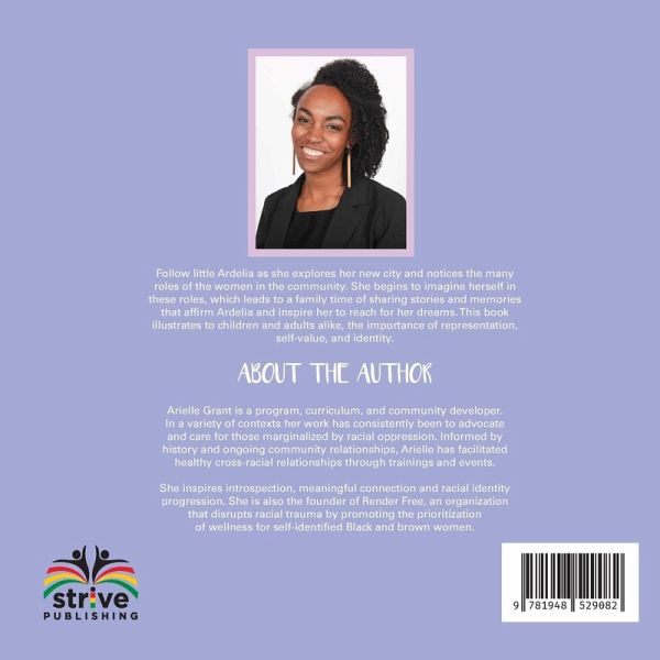 Follow little Ardelia as she explores her new city and notices the many roles of the Black women in the community. She begins to imagine herself in these roles, which leads to a family time of sharing stories and memories that affirm Ardelia and inspire her to reach for her dreams. This book illustrates to children and adults alike, the importance of representation, self-value, and identity.