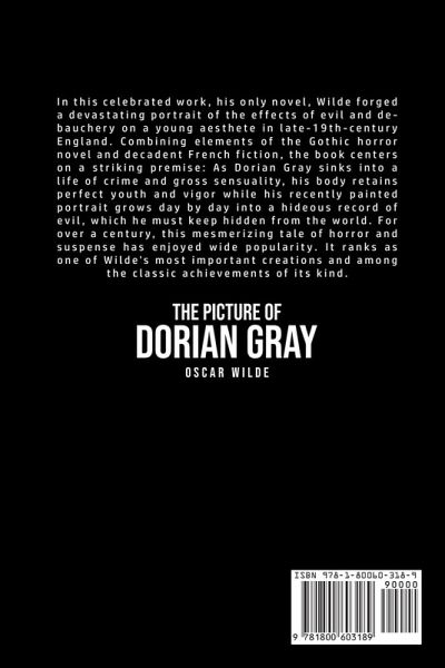 Do you want to read The Picture of Dorian Gray? If so then keep reading... In this celebrated work, his only novel, Wilde forged a devastating portrait of the effects of evil and debauchery on a young aesthete in late-19th-century England. Combining elements of the Gothic horror novel and decadent French fiction, the book centers on a striking premise: As Dorian Gray sinks into a life of crime and gross sensuality, his body retains perfect youth and vigor while his recently painted portrait grows day by day into a hideous record of evil, which he must keep hidden from the world. For over a century, this mesmerizing tale of horror and suspense has enjoyed wide popularity. It ranks as one of Wilde's most important creations and among the classic achievements of its kind. What are you waiting for The Picture of Dorian Gray is one click away, select the "Buy Now" button in the top right corner NOW!