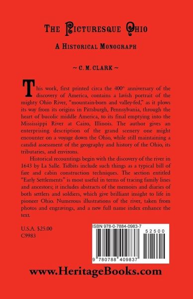 Contains a lavish portrait of the mighty Ohio, "mountain-born and valley-fed," as it plows its way from its origins in Pittsburgh, PA, through the heart of bucolic middle America, to its final emptying into the Mississippi River at Cairo, IL. The author gives an enterprising description of the grand scenery one might encounter on a voyage down the Ohio, while still maintaining a candid assessment of the geography and history of the Ohio, its tributaries, and environs. Historical recountings begin with the discovery of the river in 1643 by La Salle. Tidbits include such things as a typical bill of fare and cabin construction techniques. The section entitled "Early Settlements" is most useful in terms of tracing family lines and ancestors; it includes abstracts of the memoirs and diaries of both settlers and soldiers, which give brilliant insight to life in pioneer Ohio.