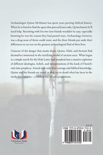 Archaeologist Quinn McMaster has spent years proving biblical history. When he is hired to find the spear that pierced Jesus's side, Quinn knows he'll need help. Reuniting with his two best friends wouldn't be easy, especially knowing he was the reason they had parted ways. Archaeology, however, was a drug none of them could resist, and the three friends put aside their differences to set out on the greatest archaeological find of their lives. Unaware of the danger that awaits them, Quinn, Habi, and Stewart find themselves immersed in the terrifying world of ancient sects. What began as a simple search for the Holy Lance had morphed into a massive explosion of different ideologies, beliefs, and interpretations of the book of Daniel's end-time prophecy. Armed with only their courage and biblical knowledge, Quinn and his friends are tested as they try to derail what has been in the works for centuries--a biblical war of epic proportions.