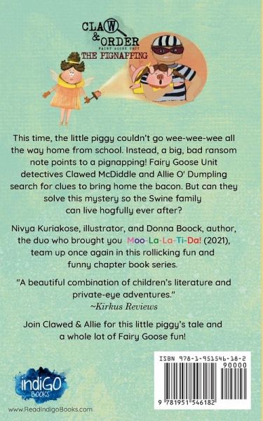 "A beautiful combination of children's literature and private-eye adventures." - Kirkus Reviews When the littlest piggy can't go "wee-wee-wee" home from school, it's time for the Fairy Goose Unit to crack the case! In The Pignapping by author Donna Boock and illustrator Nivya Kuriakose, a shocking ransom note sparks a hilarious whodunit as clever ducktectives Clawed McDiddle and Allie O'Dumpling spring into action. Can these feline Fairy Goose Unit detectives sniff out the clues and rescue the lost pig before the Swine family loses their happy ending? Packed with laugh-out-loud puns, playful…mehr