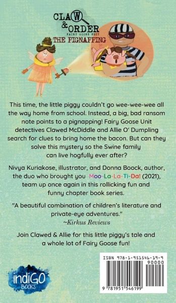 "A beautiful combination of children's literature and private-eye adventures." - Kirkus Reviews When the littlest piggy can't go "wee-wee-wee" home from school, it's time for the Fairy Goose Unit to crack the case! In The Pignapping by author Donna Boock and illustrator Nivya Kuriakose, a shocking ransom note sparks a hilarious whodunit as clever ducktectives Clawed McDiddle and Allie O'Dumpling spring into action. Can these feline Fairy Goose Unit detectives sniff out the clues and rescue the lost pig before the Swine family loses their happy ending? Packed with laugh-out-loud puns, playful…mehr