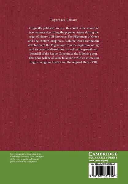 Originally published in 1915, this book is the second of two volumes describing the popular risings during the reign of Henry VIII known as the Pilgrimage of Grace and the Exeter Conspiracy. Volume Two describes the devolution of the Pilgrimage from the beginning of 1537 and its eventual dissolution, as well as the growth and downfall of the Exeter Conspiracy the following year. This book will be of value to anyone with an interest in English religious history and the reign of Henry VIII.