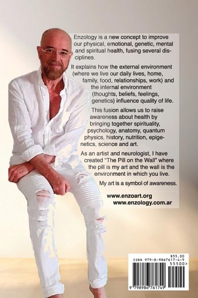 In this second edition of The Pill on the Wall®, Enzo Trapani, M.D., a neurologist and artist, has added more information in an improved format with enhanced graphics for better understanding. Enzology¿ is a new concept that Trapani developed to improve our physical, emotional, genetic, mental and spiritual health, fusing several disciplines. He explains how the external environment (where we live our daily lives, home, family, food, relationships, work) and the internal environment (thoughts, beliefs, feelings, genetics) influence our quality of life. This fusion allows us to raise awareness about health by bringing together spirituality, psychology, anatomy, quantum physics, history, nutrition, epigenetics, science and art. Using his Enzology¿ theory, Trapani created The Pill on the Wall® where the pill is his art and the wall is the environment in which you live. His art is a symbol of awareness. It's all explained in this book. It is never too late to get yourself on a path of healthy living for a longer life.