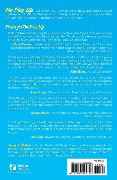 So many Christians feel like it's on us to save the world - to solve every political and social problem or lead every person we meet to Christ. We're plagued by guilt when we spend our time and money doing anything else, and we feel like failures when we realize we can't do it all. Hello, overwhelm, exhaustion, agitation, and burnout! There has to be more to the abundant life Jesus promised. The Ping Life is a framework for living an authentic Christian life filled with peace, happiness, and purpose - one where you're free to enjoy the blessings God has given you while still having an impact for God's Kingdom. In it, pastor Shane Bishop teaches you how to establish a baseline of Christian discipleship and tune your receiver to the frequency of God's voice, so you can hear "pings" from the Holy Spirit and develop sustainable spiritual rhythms. Filled with stories of ordinary humans who listened to God's pings and became part of Kingdom history, this is an entertaining, easy read that will inspire you, free you, and invite you into an adventure with God. In an agitated, works-based world, discover a simple approach to life that is revolutionary, counter cultural, and life giving.