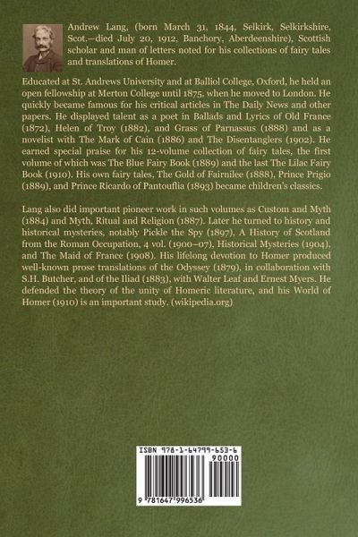 Andrew Lang, (born March 31, 1844, Selkirk, Selkirkshire, Scot.-died July 20, 1912, Banchory, Aberdeenshire), Scottish scholar and man of letters noted for his collections of fairy tales and translations of Homer. Educated at St. Andrews University and at Balliol College, Oxford, he held an open fellowship at Merton College until 1875, when he moved to London. He quickly became famous for his critical articles in The Daily News and other papers. He displayed talent as a poet in Ballads and Lyrics of Old France (1872), Helen of Troy (1882), and Grass of Parnassus (1888) and as a novelist with The Mark of Cain (1886) and The Disentanglers (1902). He earned special praise for his 12-volume collection of fairy tales, the first volume of which was The Blue Fairy Book (1889) and the last The Lilac Fairy Book (1910). His own fairy tales, The Gold of Fairnilee (1888), Prince Prigio (1889), and Prince Ricardo of Pantouflia (1893) became children's classics. Lang also did important pioneer work in such volumes as Custom and Myth (1884) and Myth, Ritual and Religion (1887). Later he turned to history and historical mysteries, notably Pickle the Spy (1897), A History of Scotland from the Roman Occupation, 4 vol. (1900-07), Historical Mysteries (1904), and The Maid of France (1908). His lifelong devotion to Homer produced well-known prose translations of the Odyssey (1879), in collaboration with S.H. Butcher, and of the Iliad (1883), with Walter Leaf and Ernest Myers. He defended the theory of the unity of Homeric literature, and his World of Homer (1910) is an important study. (wikipedia.org)