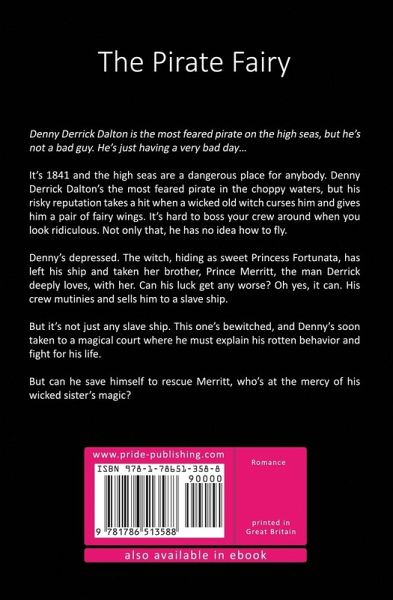 Denny Derrick Dalton is the most feared pirate on the high seas, but he's not a bad guy. He's just having a very bad day... It's 1841 and the high seas are a dangerous place for anybody. Denny Derrick Dalton's the most feared pirate in the choppy waters, but his risky reputation takes a hit when a wicked old witch curses him and gives him a pair of fairy wings. It's hard to boss your crew around when you look ridiculous. Not only that, he has no idea how to fly. Denny's depressed. The witch, hiding as sweet Princess Fortunata, has left his ship and taken her brother, Prince Merritt, the man Derrick deeply loves, with her. Can his luck get any worse? Oh yes, it can. His crew mutinies and sells him to a slave ship. But it's not just any slave ship. This one's bewitched, and Denny's soon taken to a magical court where he must explain his rotten behavior and fight for his life. But can he save himself to rescue Merritt, who's at the mercy of his wicked sister's magic?