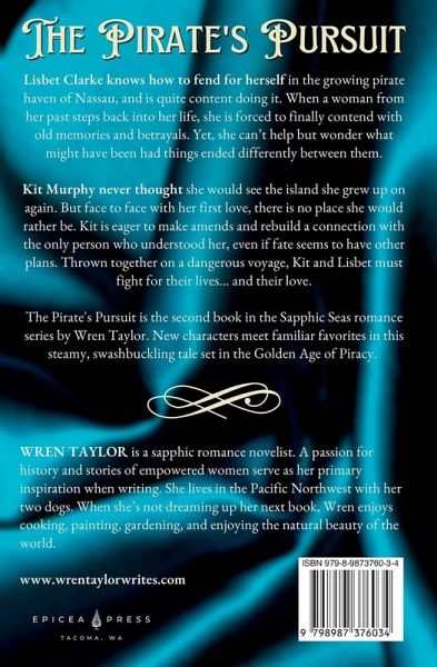 Lisbet Clarke knows how to fend for herself in the growing pirate haven of Nassau, and is quite content doing it. When a woman from her past steps back into her life, she is forced to finally contend with old memories and betrayals. Yet, she can't help but wonder what might have been had things ended differently between them. Kit Murphy never thought she would see the island she grew up on again. But face to face with her first love, there is no place she would rather be. Kit is eager to make amends and rebuild a connection with the only person who understood her, even if fate seems to have other plans. Thrown together on a dangerous voyage, Kit and Lisbet must fight for their lives... and their love. The Pirate's Pursuit is the second book in the Sapphic Seas romance series by Wren Taylor. New characters meet familiar favorites in this steamy, swashbuckling tale set in the Golden Age of Piracy.