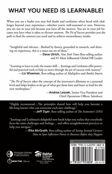 Dave Jennings is a leadership and organizational change consultant. He has guided leaders from across the globe to navigate The Pit of Success for themselves, their teams, and their company. He has worked with such organizations as Salesforce, Microsoft, Intel, Oracle, Deloitte, Exxon/Mobil, Schneider Electric, Myriad Genetics, Kaiser-Permanente, Alaska Airlines, and the FBI. He has been a featured speaker at leadership conferences in twenty-two countries. He is author of Catapulted: How Great Leaders Succeed Beyond Their Experience, and his articles and commentary have been relied on by the Washington Post, Forbes, and TheStreet.com. He is an adjunct instructor for Kenan-Flagler Business School¿s Executive Development program at the University of North Carolina. He earned his PhD researching change resilience. Contact Dave at dave@davejennings.com or learn more online at www.learnablesolutions.com and www.davejennings.com. Dave resides in Alpine, UT.